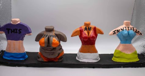 It is four girls with different body types wearing revealing clothes with writing saying THIS IS NOT AN INVITATION. It is to show that your body type and what you're wearing doesn't give anyone an excuse to touch you or make you uncomfortable.
